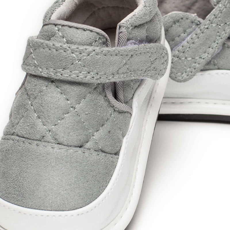 These quilted velvet slip-ons are oh so luxurious in pewter!