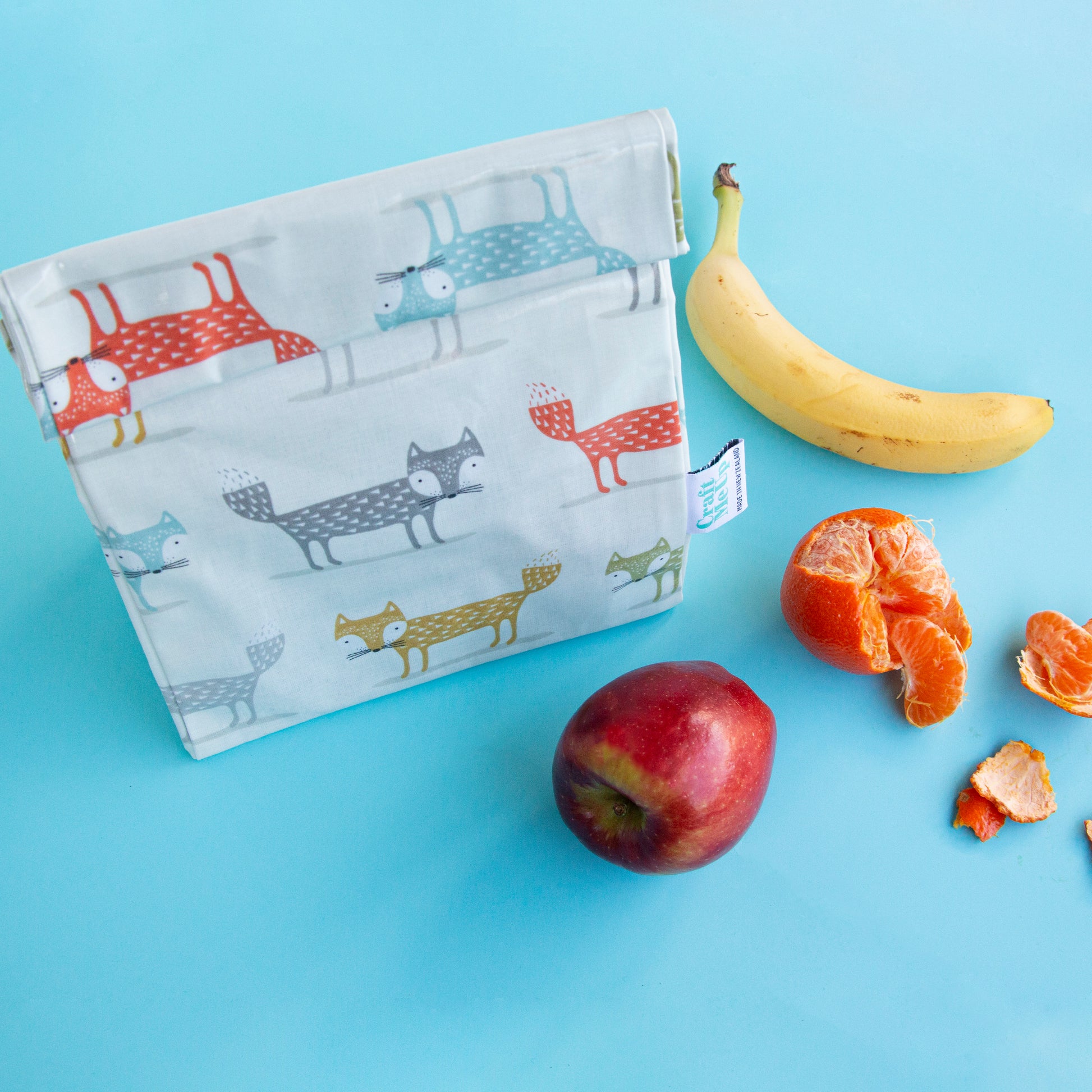 Made from oil cloth fabric, these lunch bags are sturdy and easy to wipe clean with warm soapy water. Velcro straps along the top of the lunch bag allow you to secure your goodies into the lunch bag and then forms a handle.