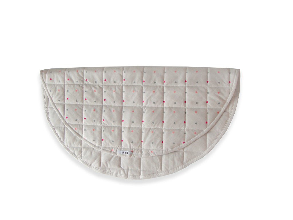 A sweet and adorable quilted playmat. Multiple uses from baby playtime to portable baby changing station. Comes packaged in a calico draw-string bag ready to grab and go. Or it makes a perfect ready made gift for a baby shower.