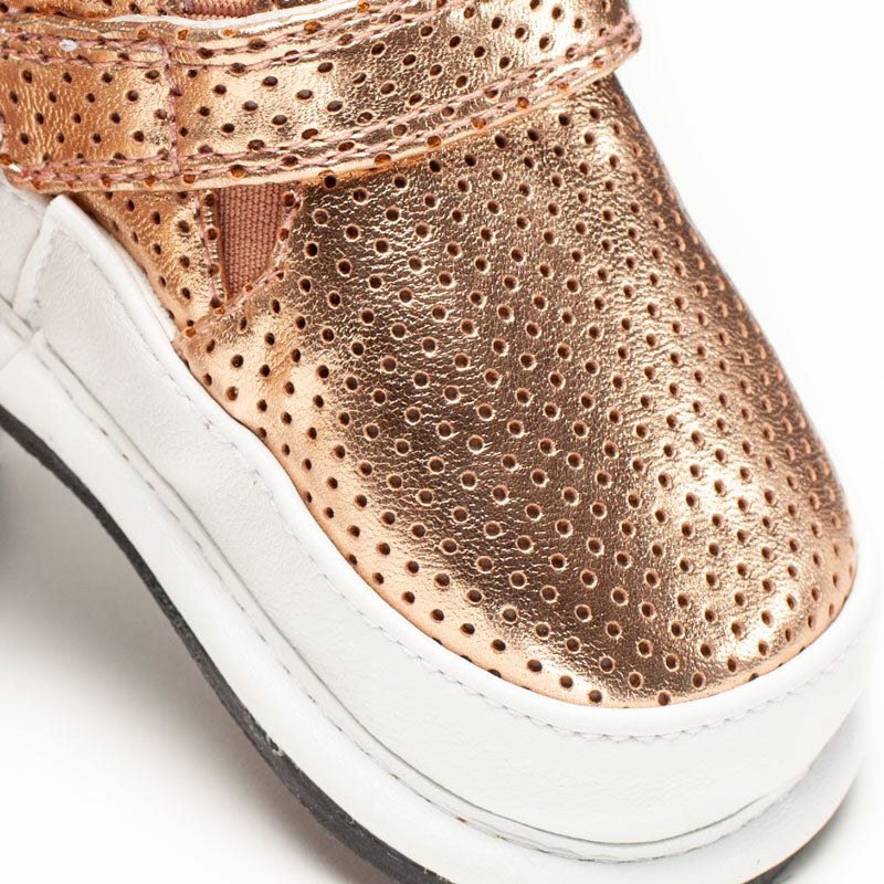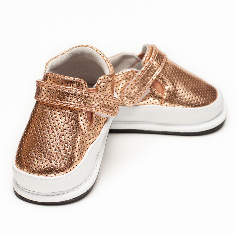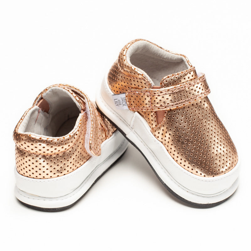 Your little cutie will shimmer and shine in these rose gold sneaks!