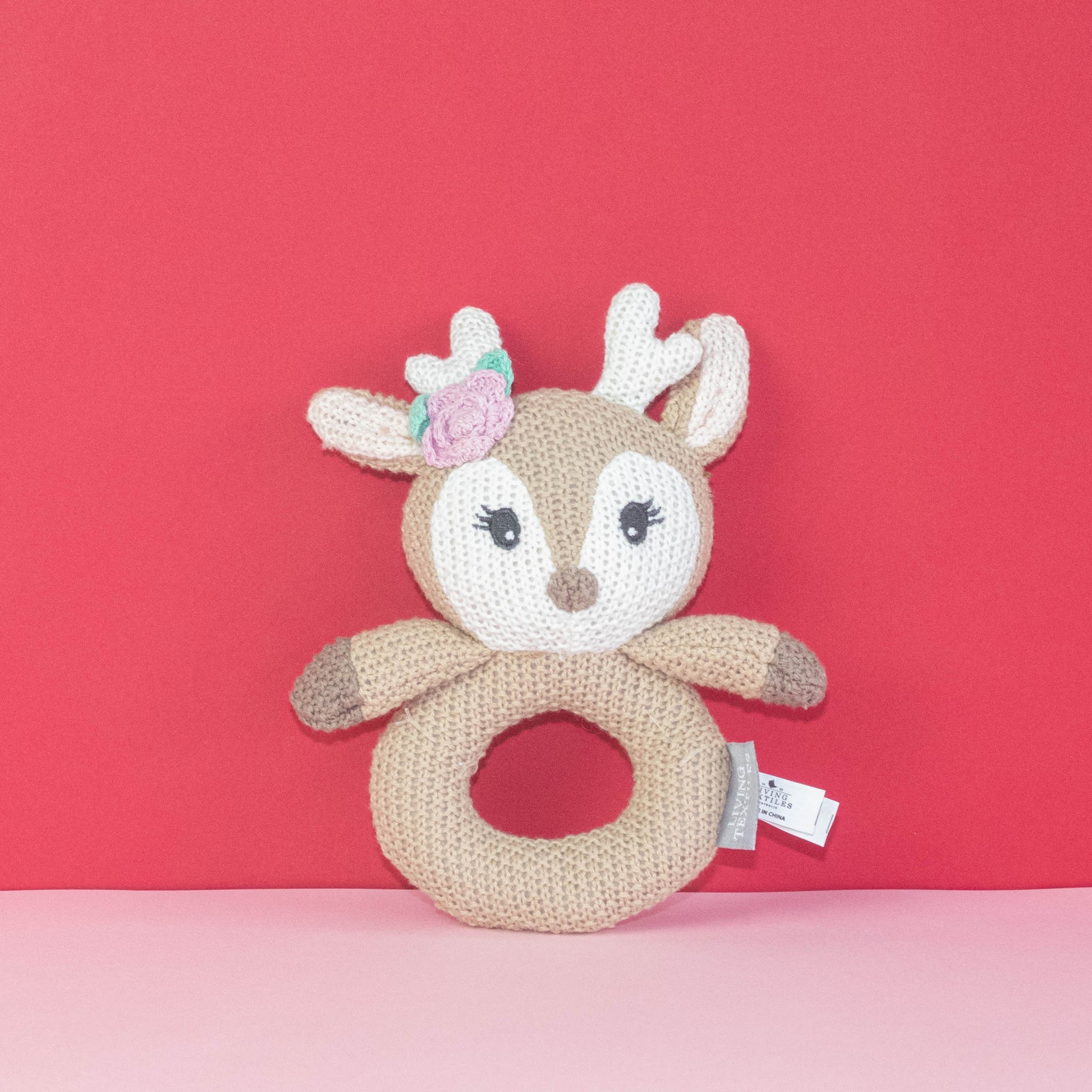 • Knitted rattle - Ava the fawn. Soft jingling rattle. 100% cotton