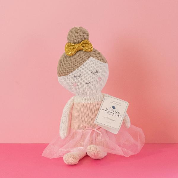 • Sophie the ballerina knitted toy - 37cm. Featuring a jingling rattle and gorgeous tulle skirt. 100% cotton knit, polyester fill.