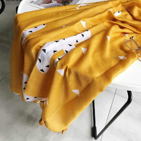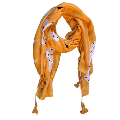 This is one scarf that will stand out with its canary yellow and cactus design. And we know the tassels really make this scarf fun.